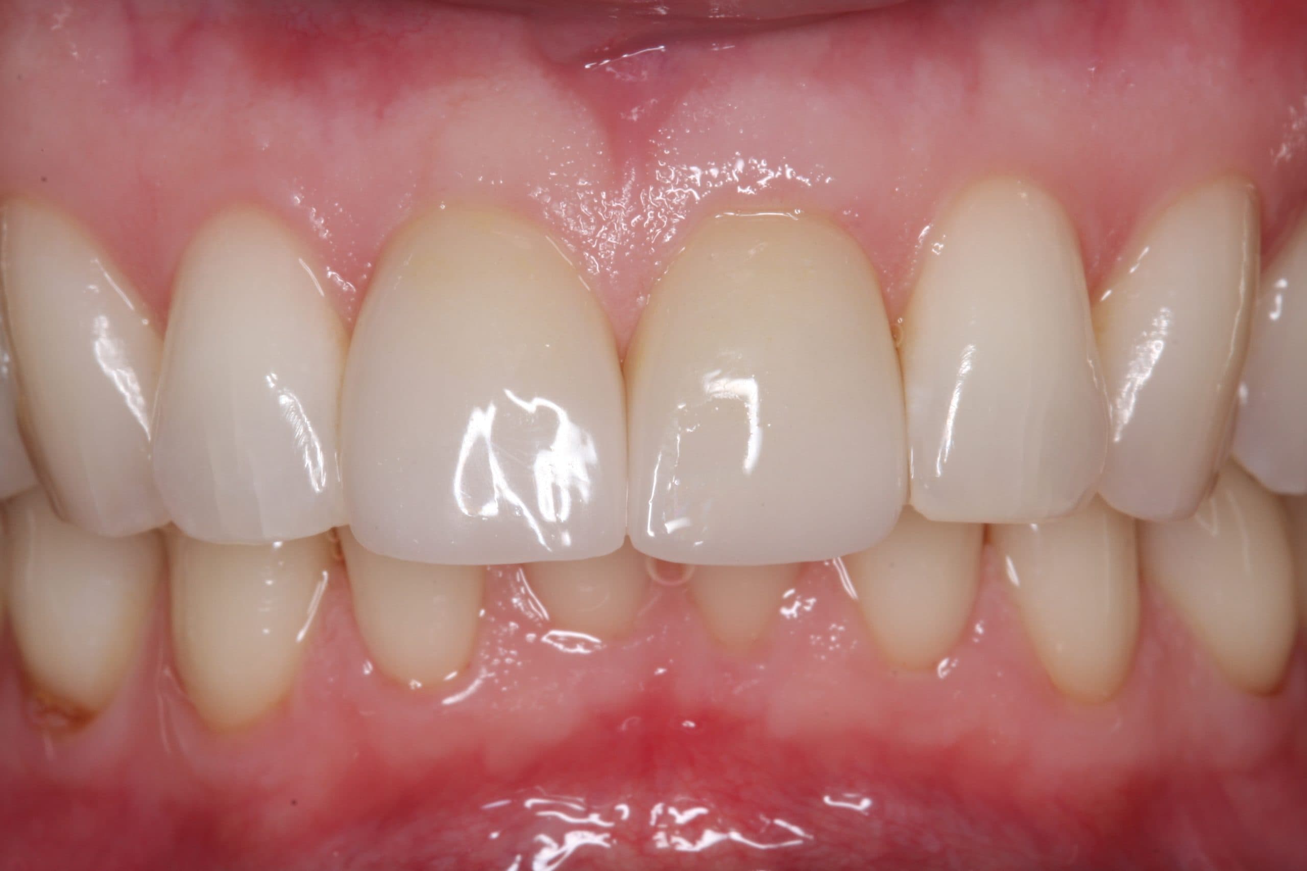 In this example, the patient had a front tooth fracture. An esthetic crown—which is a cap specifically designed to match the surrounding teeth—was used to restore the tooth.